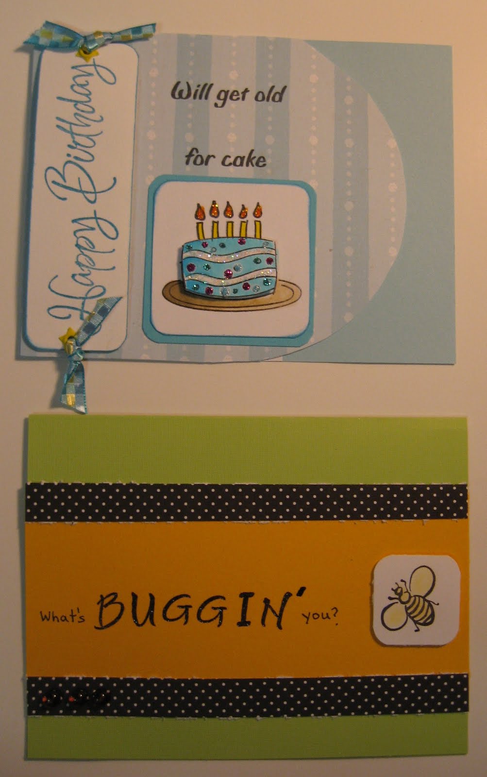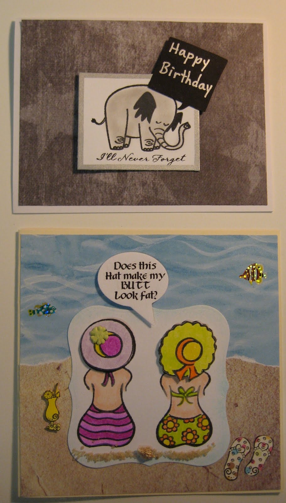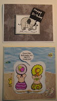 Hello All! Yes I am still living and crafting.....where have I been the whole summer and then some...well I have been here...no I have not been sick.....just been very lackadazical(if thats a word) in the blogging department. Yes we have been meeting every month and doing our cards...as you will see in this post with the oh sooooooo many pictures of the last four or five card exchanges....I might even make it into 2 or 3 post to get all the pictures up. Our group has been busy in the last few months.....with summer holidays, a wedding and a birth of a grandchild, designing and preparing for classes ..... so hopefully you all understand the tardiness of the blog person here. So on to the pictures....Our July exchange theme was humour, August was a sketch, September was Halloween/Goth, and October was a sketch. Enjoy the pictures, and hopefully I can now start keeping the blog up-to-date with postings. In this post I will show you the July card exchange....thanks for your patience and for visiting us here.