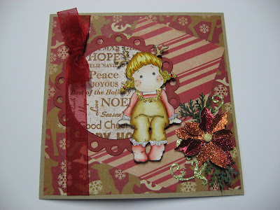 So the picture is a Christmas card I made with a Magnolia stamp - Reindeer Tilda, I coloured her using Distress Inks.